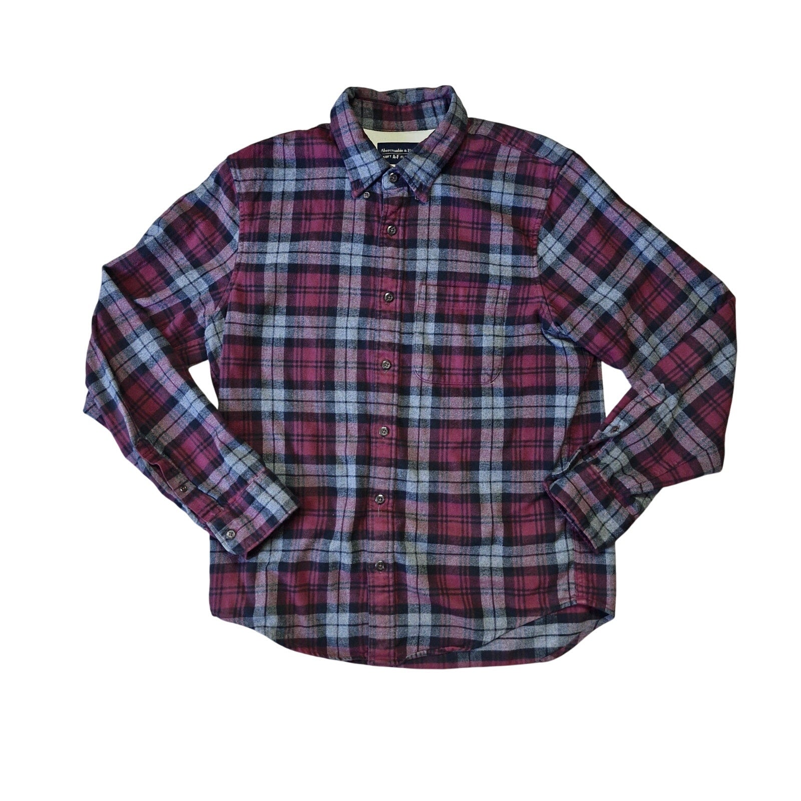 Abercrombie & Fitch button-up shirt in size Medium with a timeless plaid print in red and grey. Designed with a tailored look. Ideal for casual wear or layering. Pre-owned and in fair condition - no rips, no stains. Check photos for details.