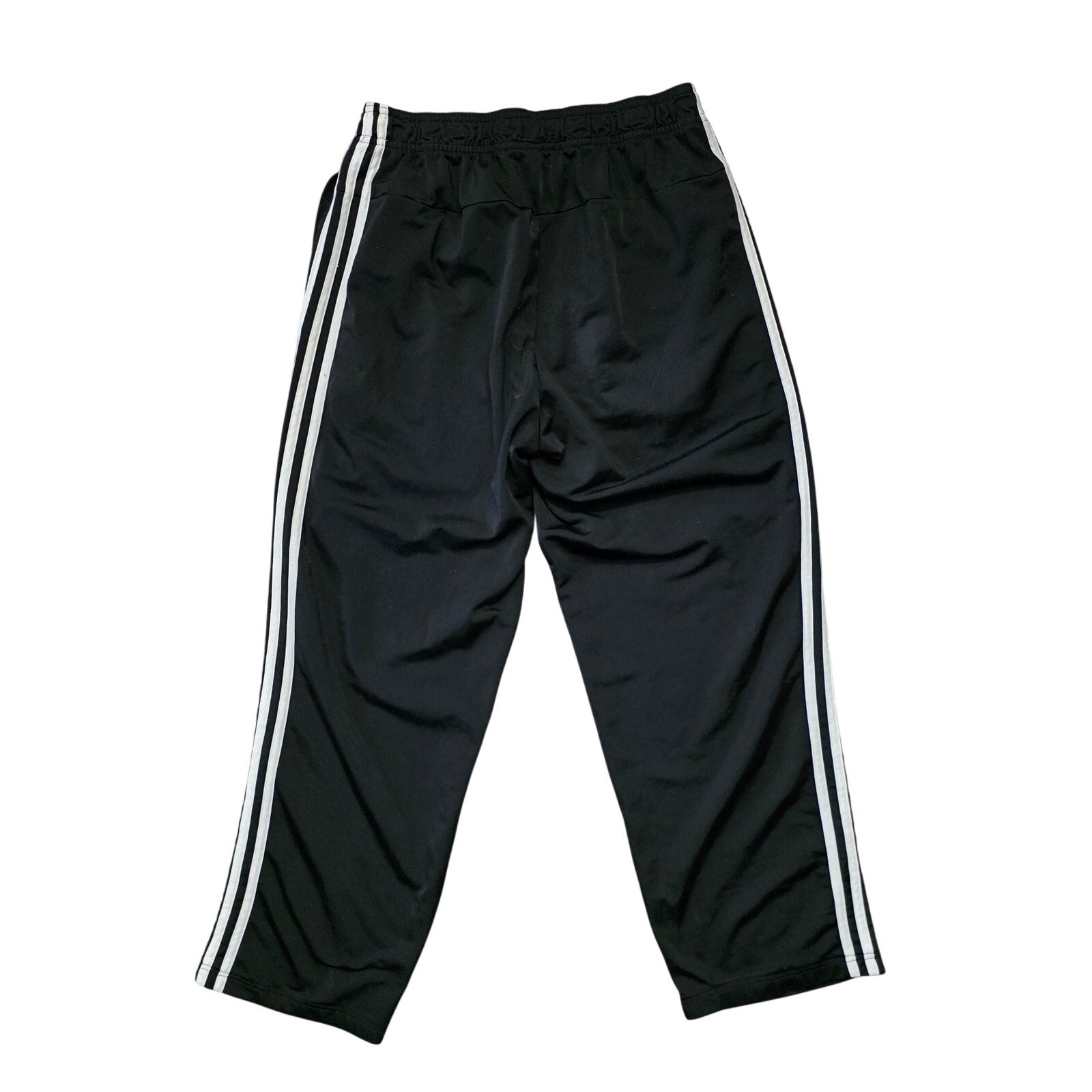 Pre-owned, in good condition with no stains or tears. Classic adidas 3-Stripes track pants with a regular fit and open hem for a straight-leg style. Features elastic waistband with drawcord, lightweight tricot fabric, and signature side stripes. Perfect for casual wear, training, or lounging.