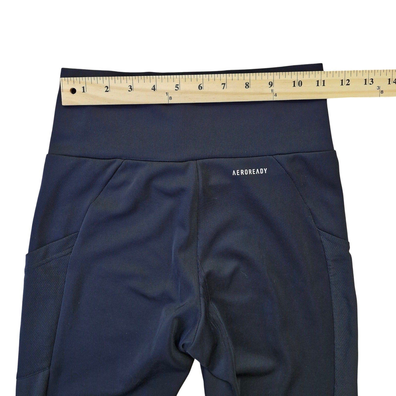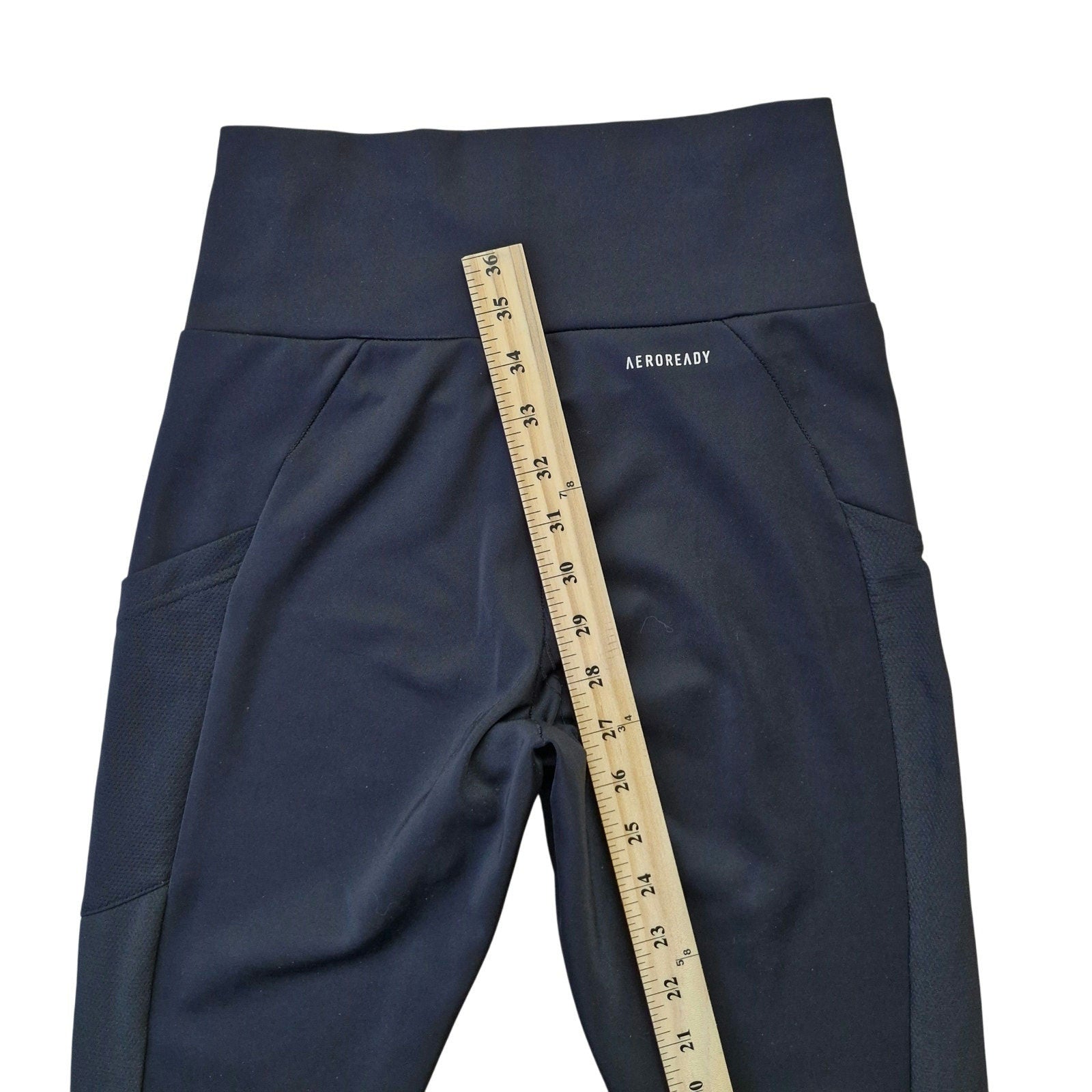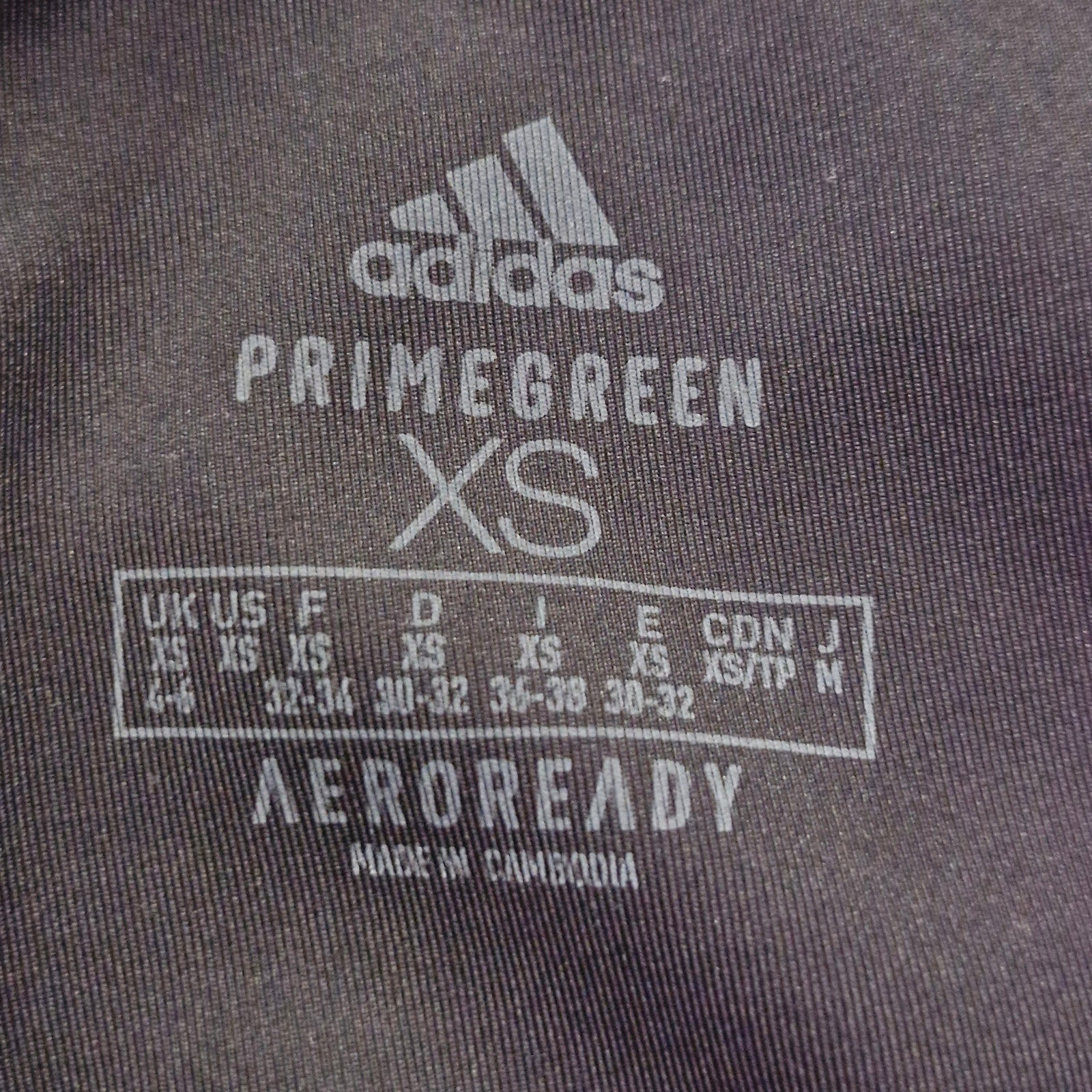 Adidas Primegreen AEROREADY leggings in black, women’s size XS. High-rise waistband with moisture-wicking fabric made from recycled materials. Sleek, stretchy fit designed for training, gym, or everyday comfort.
