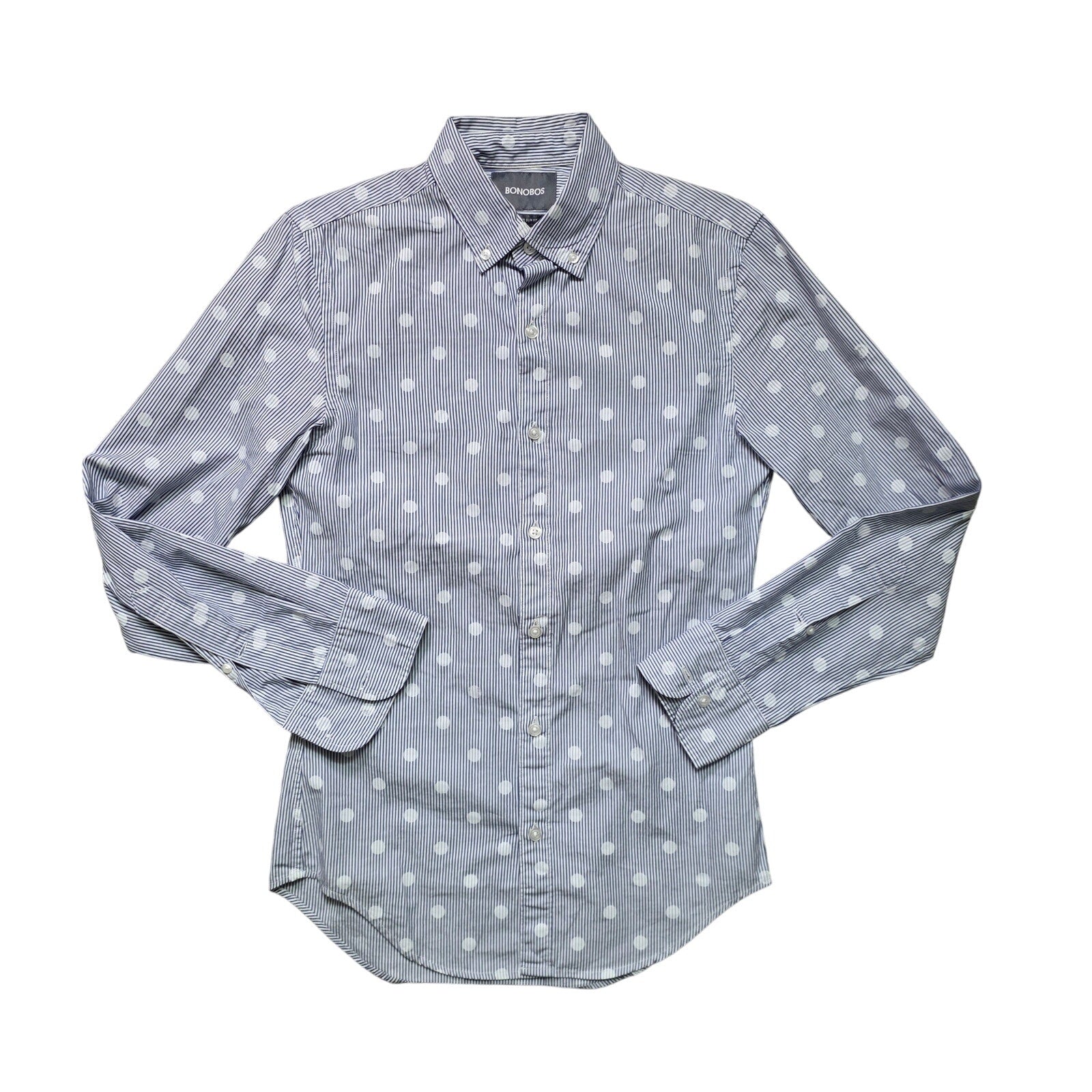 Bonobos slim fit button down in men’s size XS. Lightweight and comfortable with a tailored modern cut, perfect for the office, casual nights out, or layering.