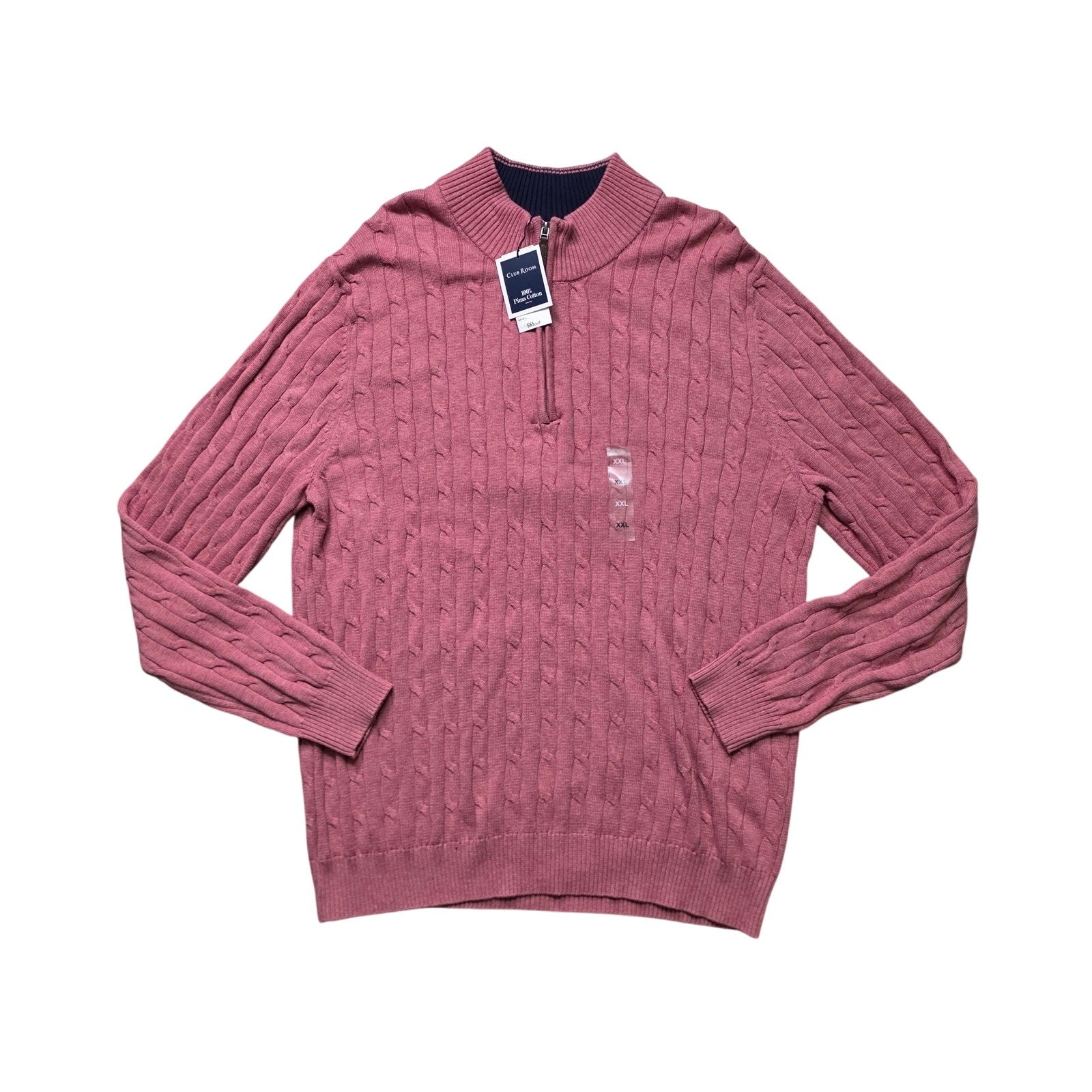 Club Room Quarter-Zip Sweater Men XXL Red Cotton Cable Knit