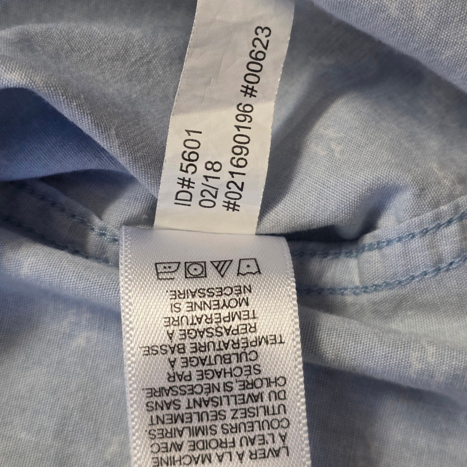 Men’s Express short sleeve soft wash dress shirt in light blue. Lightweight cotton blend with a casual yet polished look, perfect for work, nights out, or everyday wear.