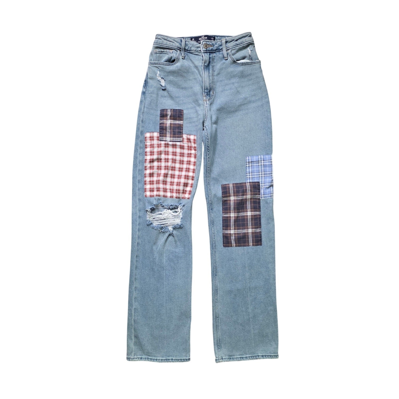 Hollister Ultra High-Rise Ripped Patch Dad Jeans Women’s 0R 24x31 Light Wash