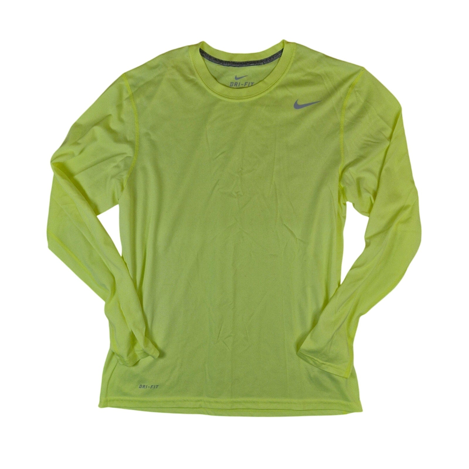 Nike Dri-Fit Running Mens Medium Neon Yellow Active Long Sleeve Tee 2014