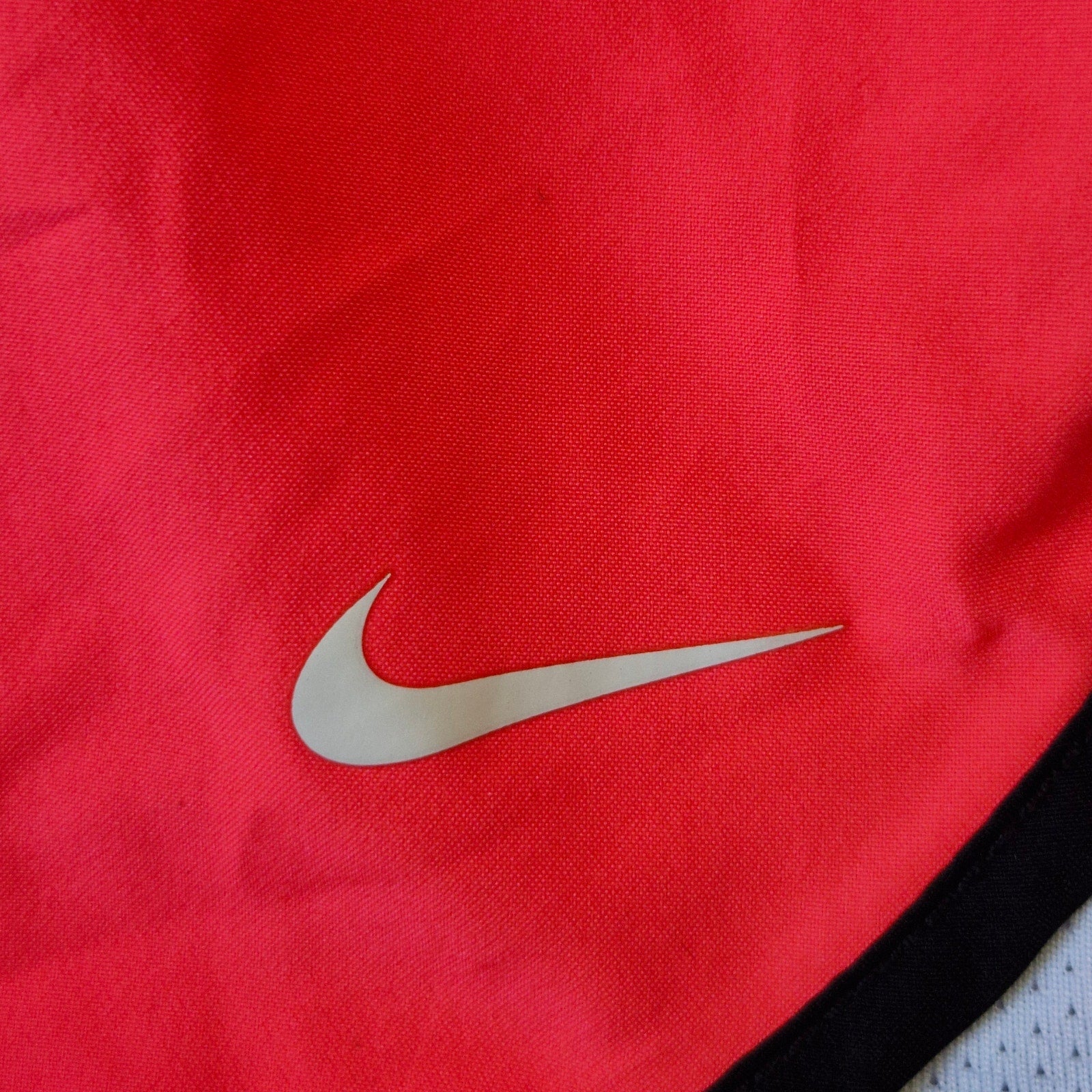 Nike running shorts in vibrant neon pink with black and white trim. Girls’ size XL (10–12), but fits comparable to a Women’s size Small (approximately 13″ across waist).