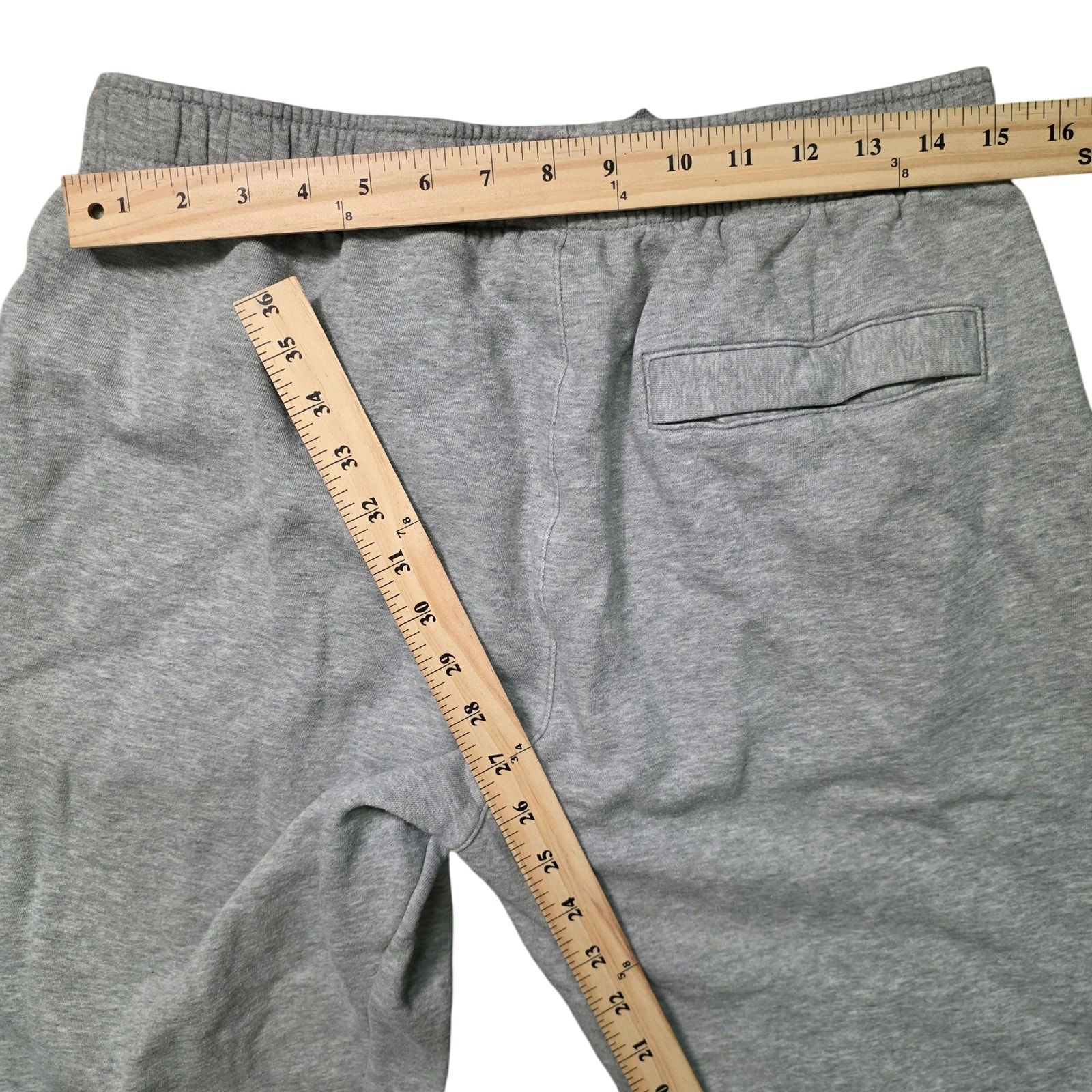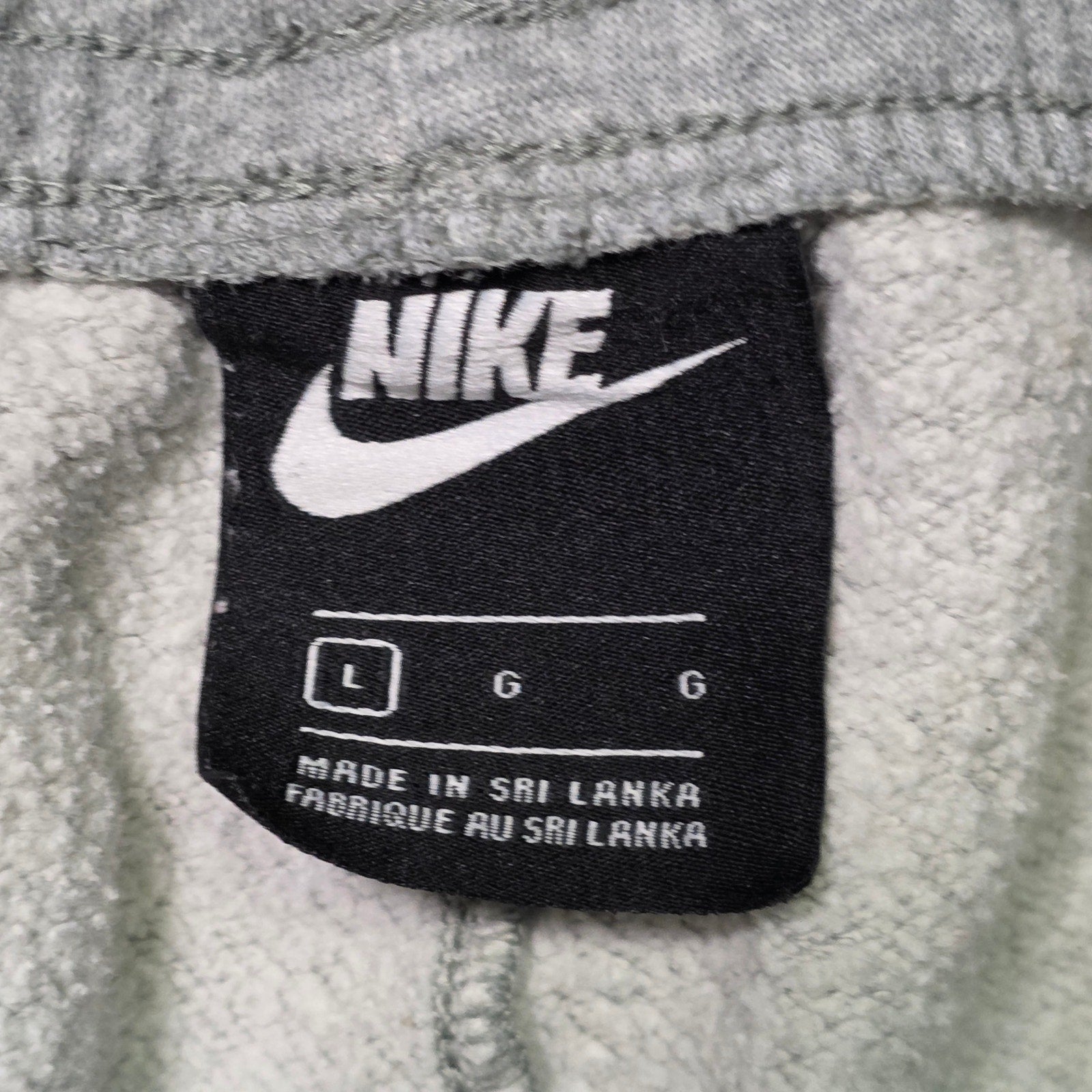 Men’s Nike sweatpants size large in gray, featuring a small embroidered Swoosh and matching spell-out branding. Soft fleece, comfy fit with elastic waist and cuffs. Great for lounging, casual wear, or street style.