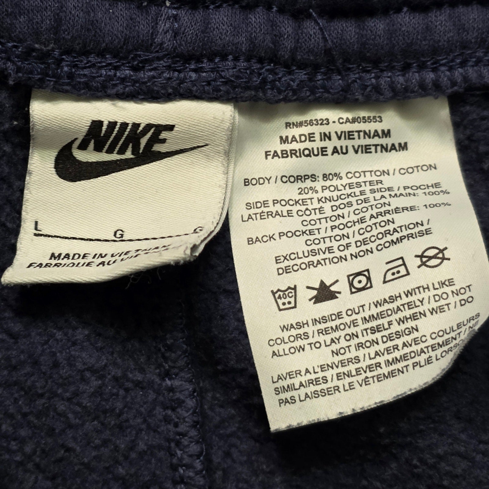 Soft navy blue Nike fleece shorts with classic swoosh logo. Comfortable and casual fit, perfect for gym sessions, lounging, or everyday wear.