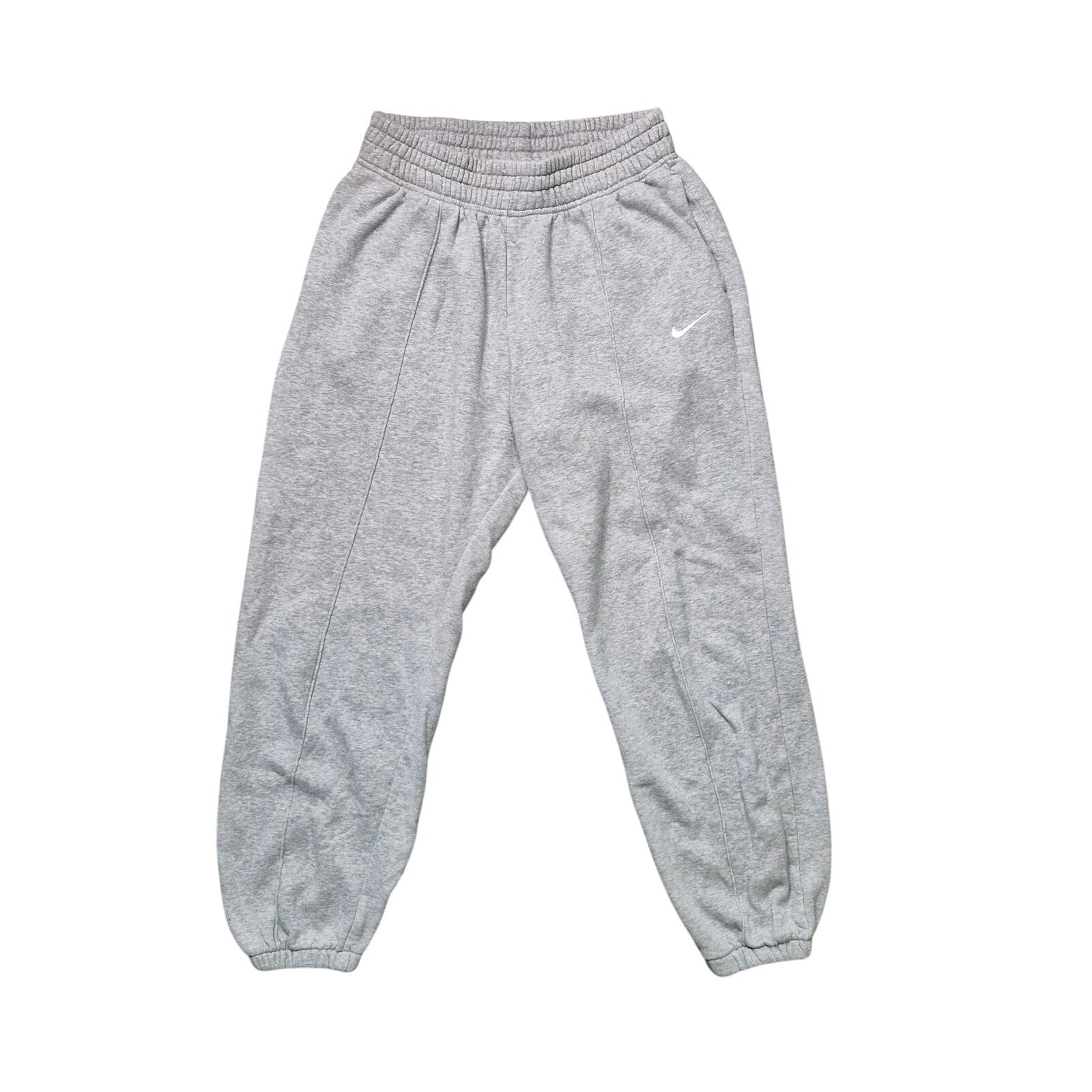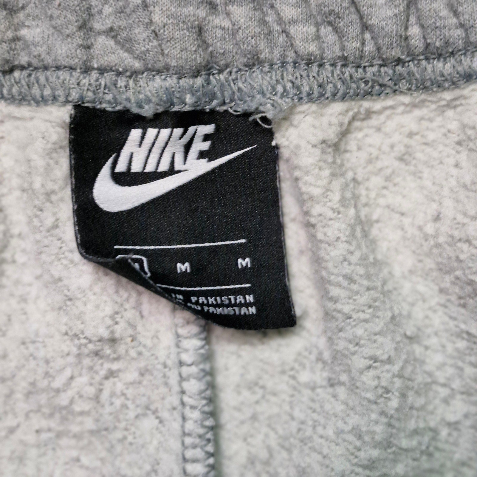 Nike jogger pants in gray, men’s size Medium. Mid-rise with a loose fit, elastic waistband, and side pockets. Made with soft, breathable fabric and cuffed ankles ideal for casual wear, gym sessions, or lounging.