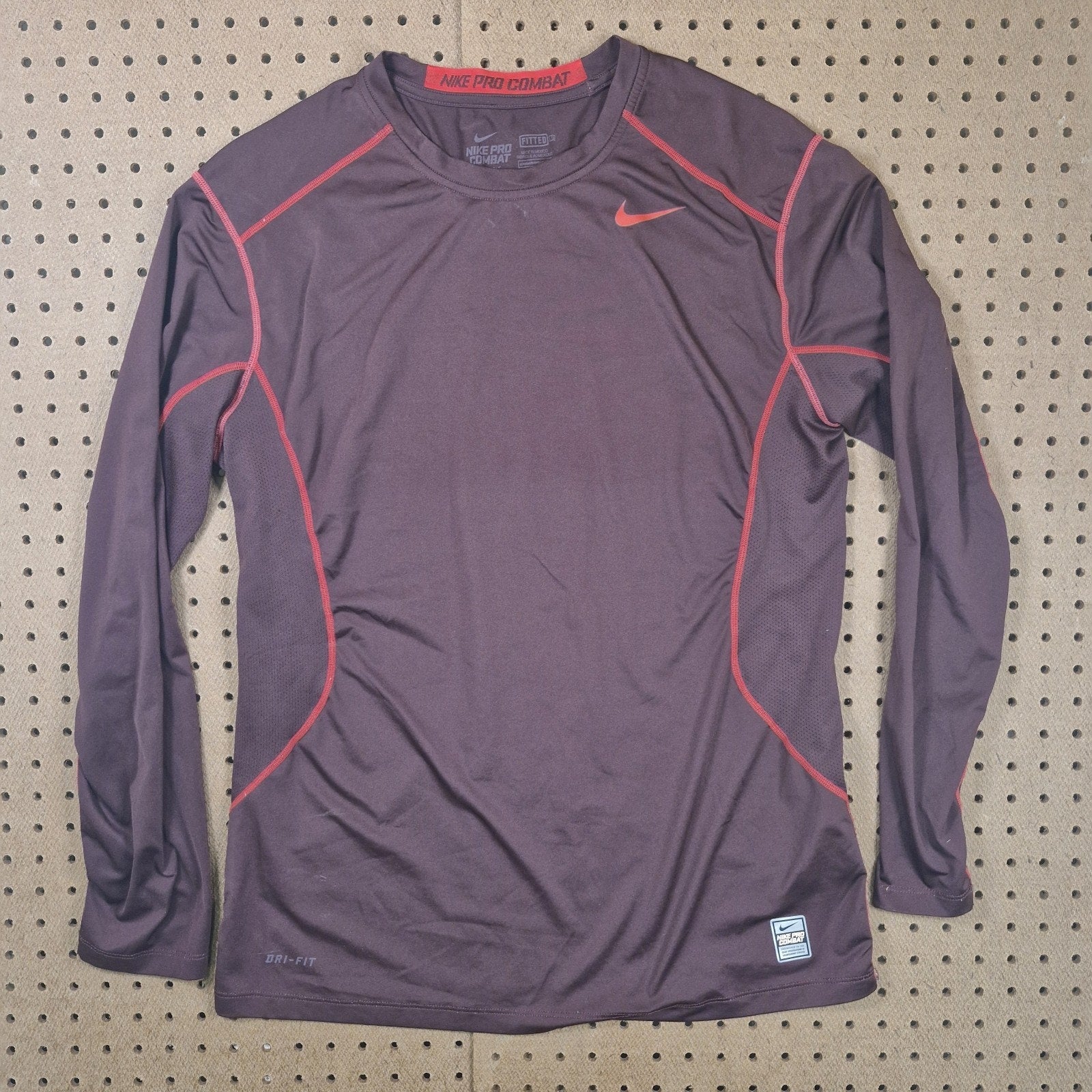 Nike Pro Combat Shirt Mens Large Maroon Dri Fit Fitted Lightweight Long sleeve