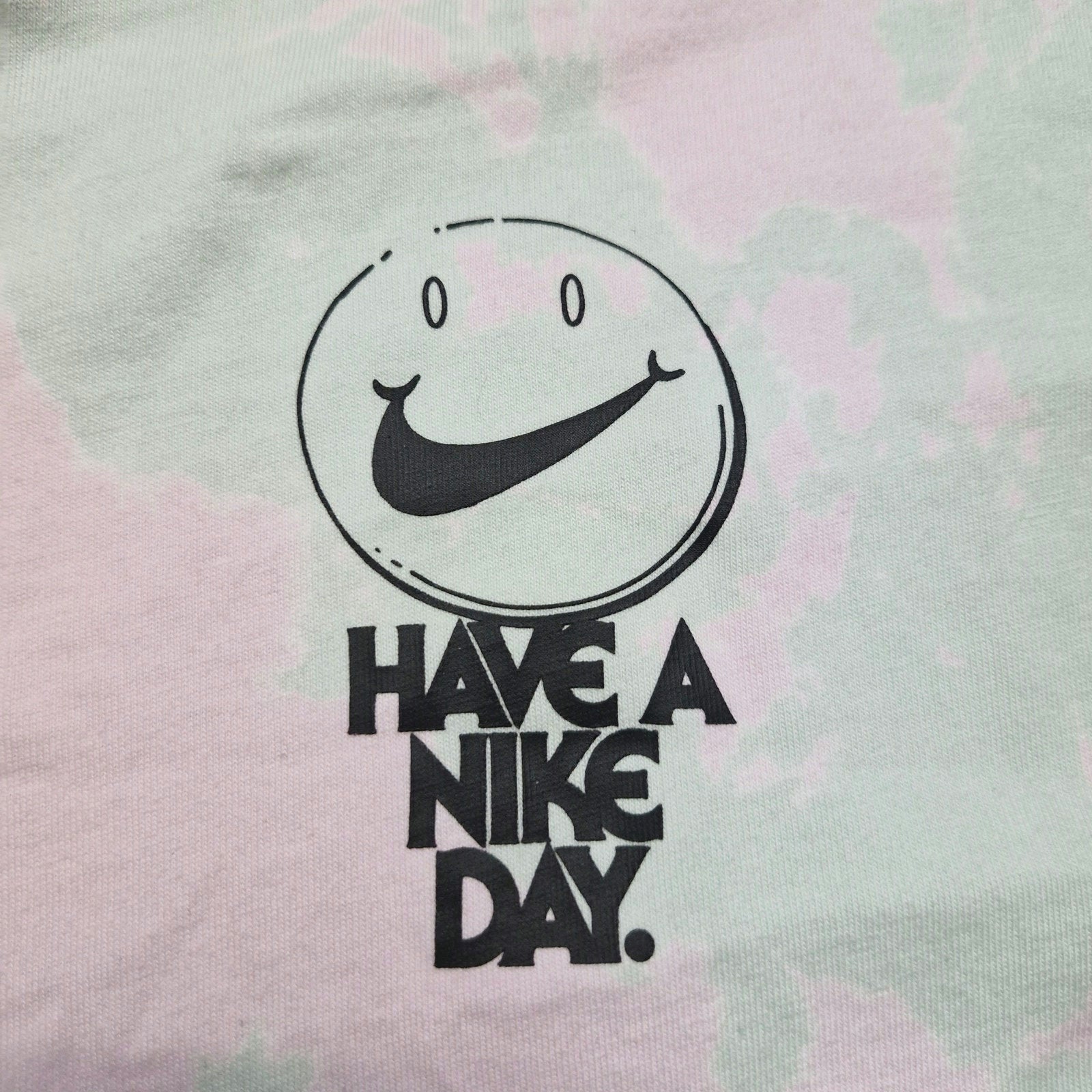 Eye-catching Nike long sleeve tunic hoodie dress in size XL. Features a fun pink and green tie-dye wash with a relaxed fit and “Have a Nike Day” style graphic.