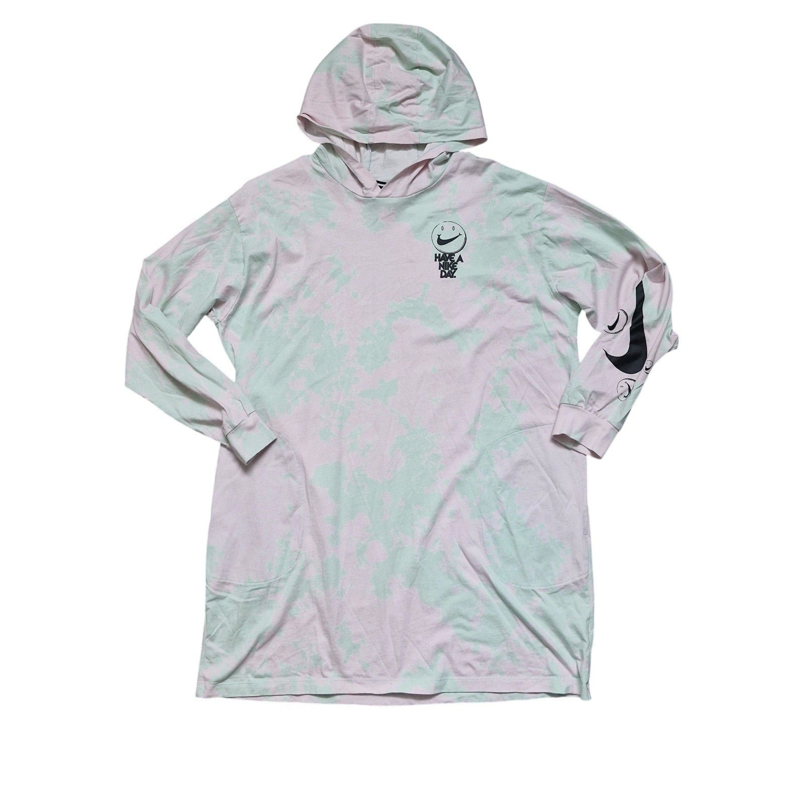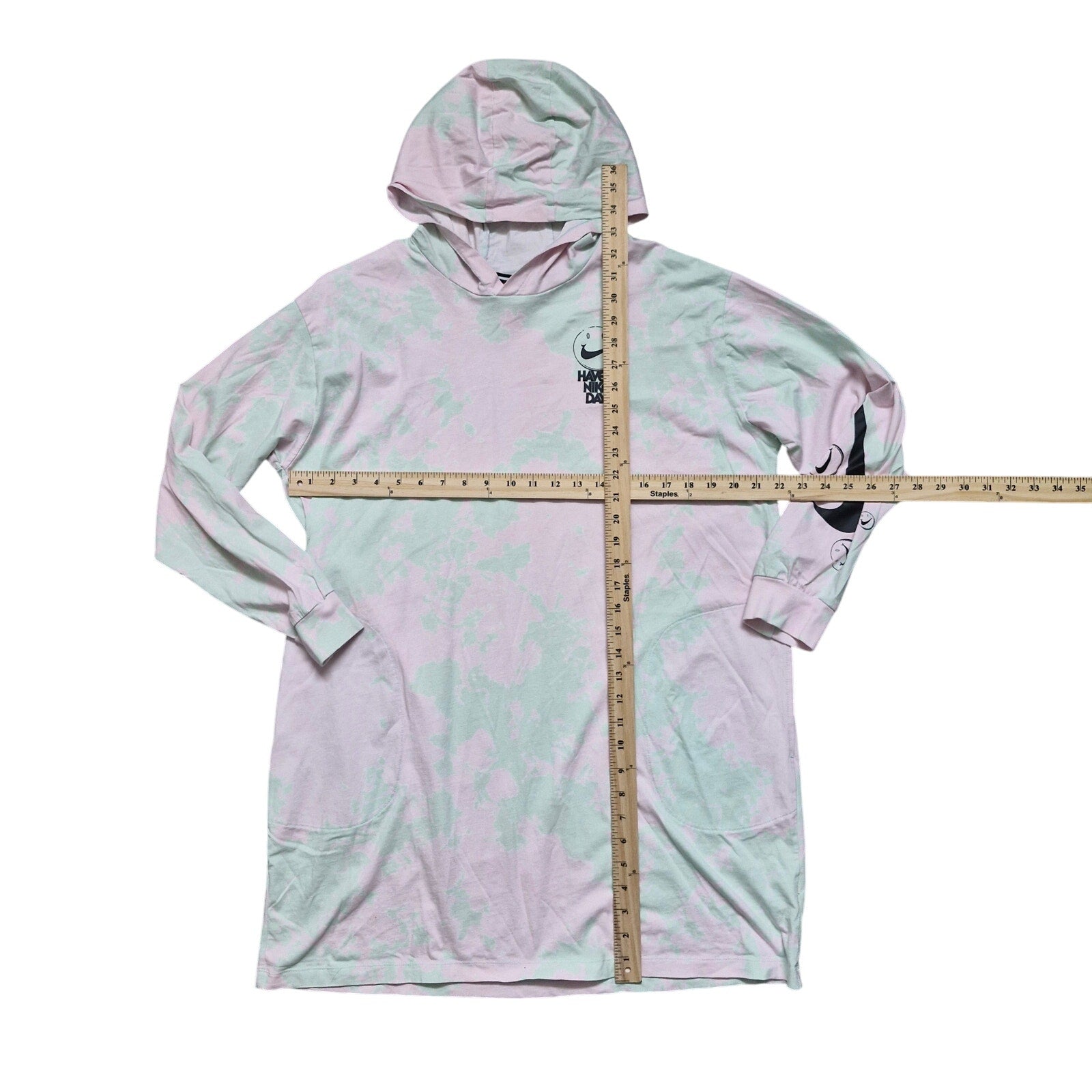 Nike Tie Dye Tunic Hoodie Dress Pink Green Long Sleeve “Nice Day” Size XL