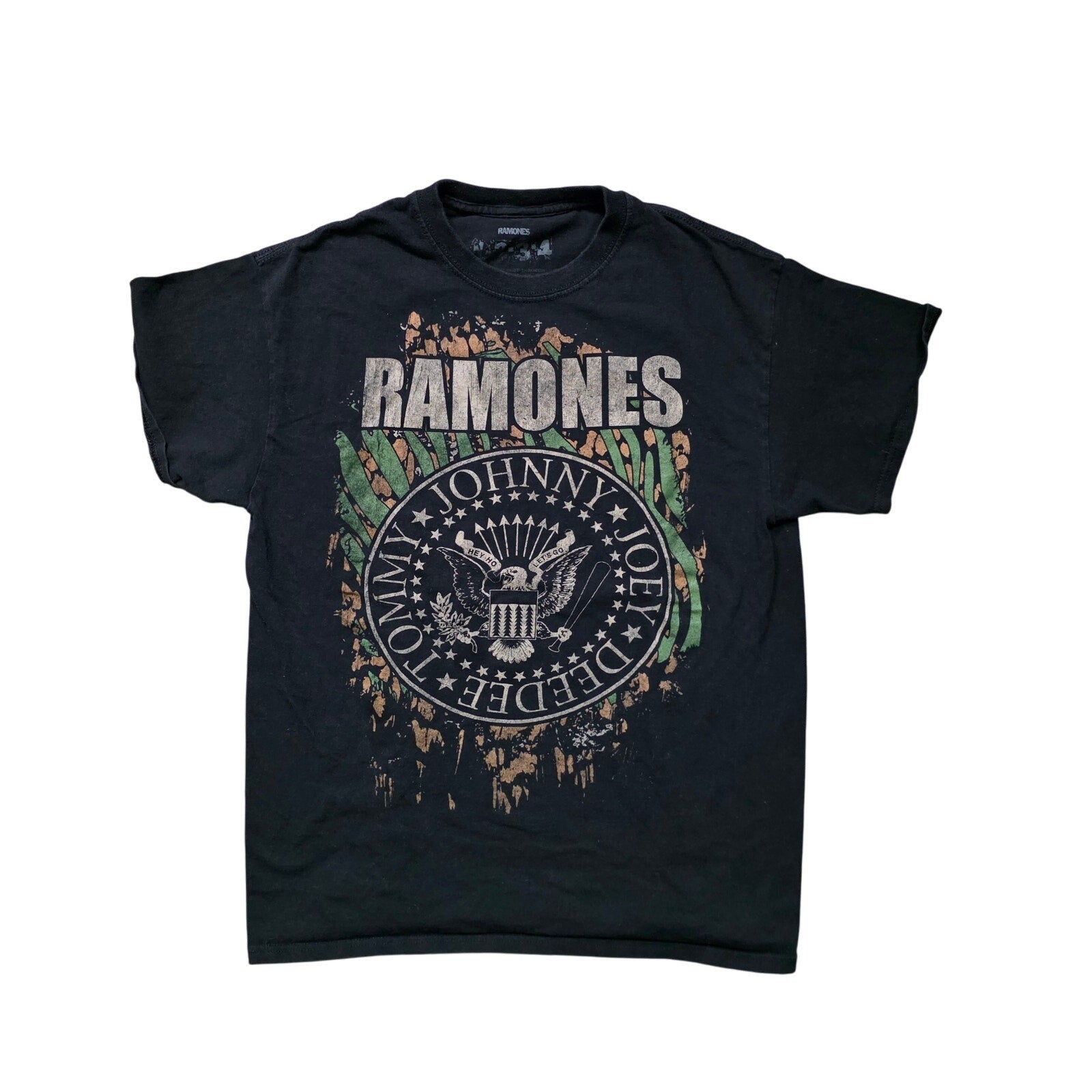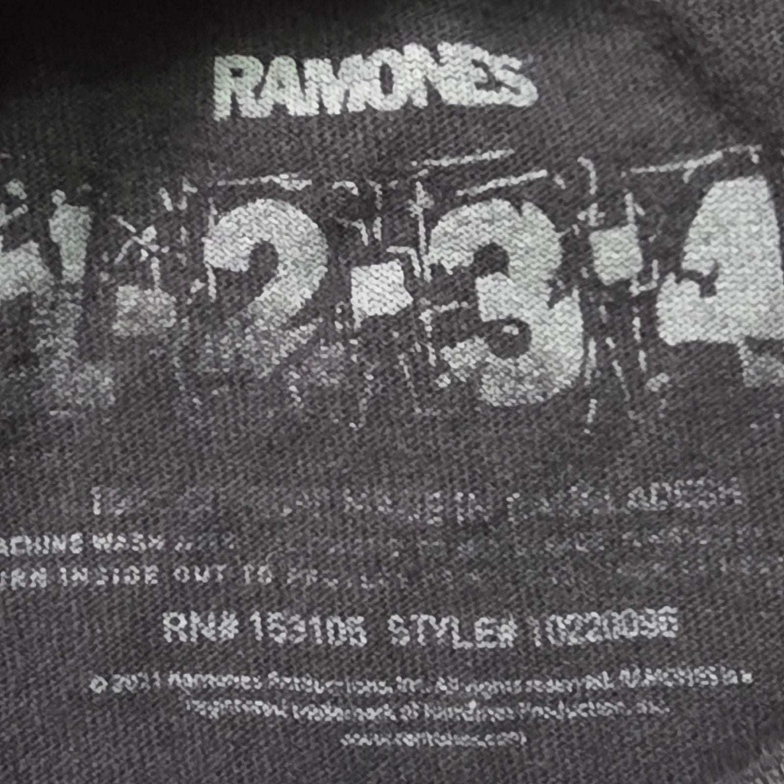 Classic Ramones tee with bold “1 2 3 4” punk rock graphic. Soft black cotton with a standard fit, perfect for concerts, casual wear, or any fan of the iconic band.