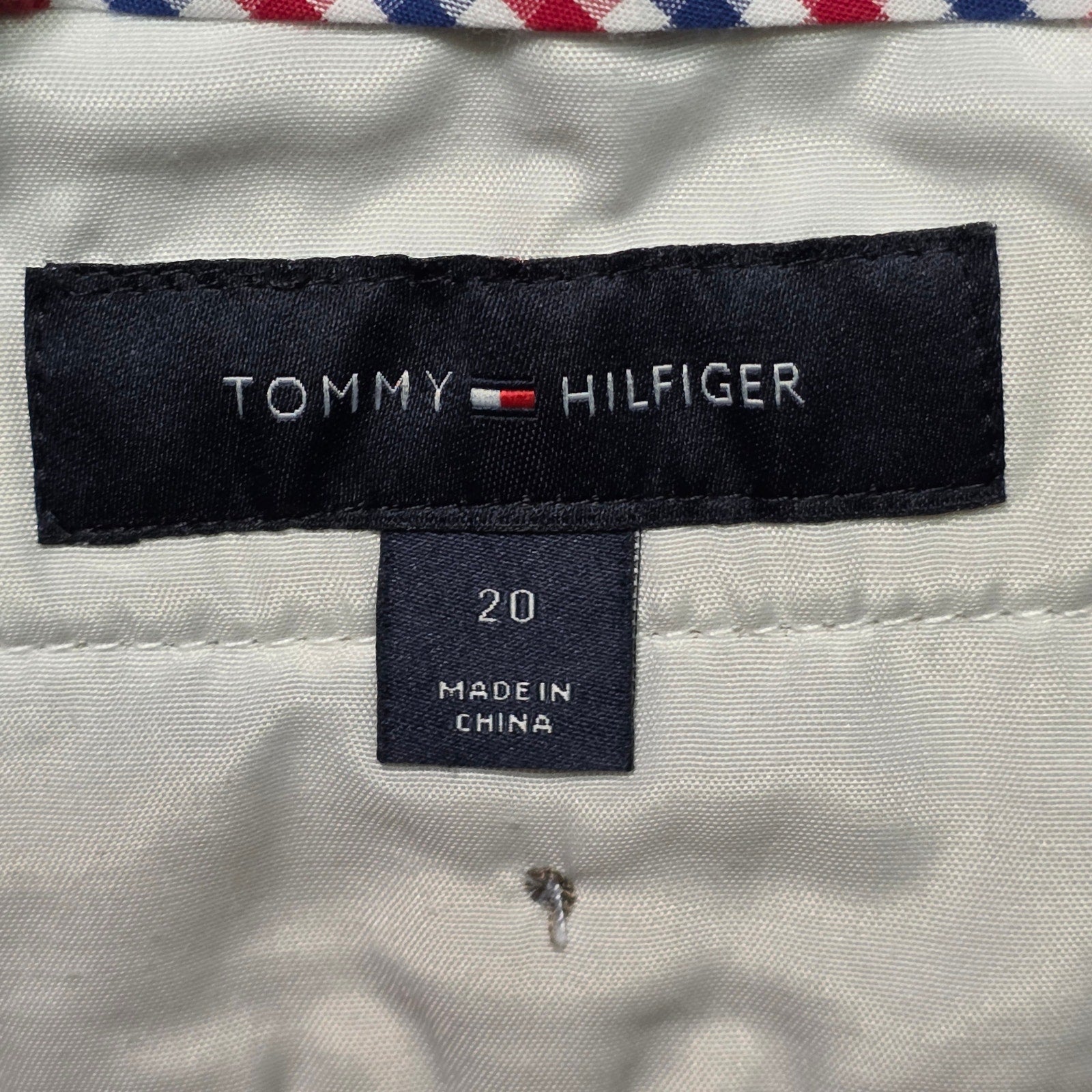 Tommy Hilfiger Denton Chino pants for boys, size 20. Straight fit design in soft cotton twill with belt loops, side pockets, and back welt pockets — perfect for school, casual outings, or dressy events.