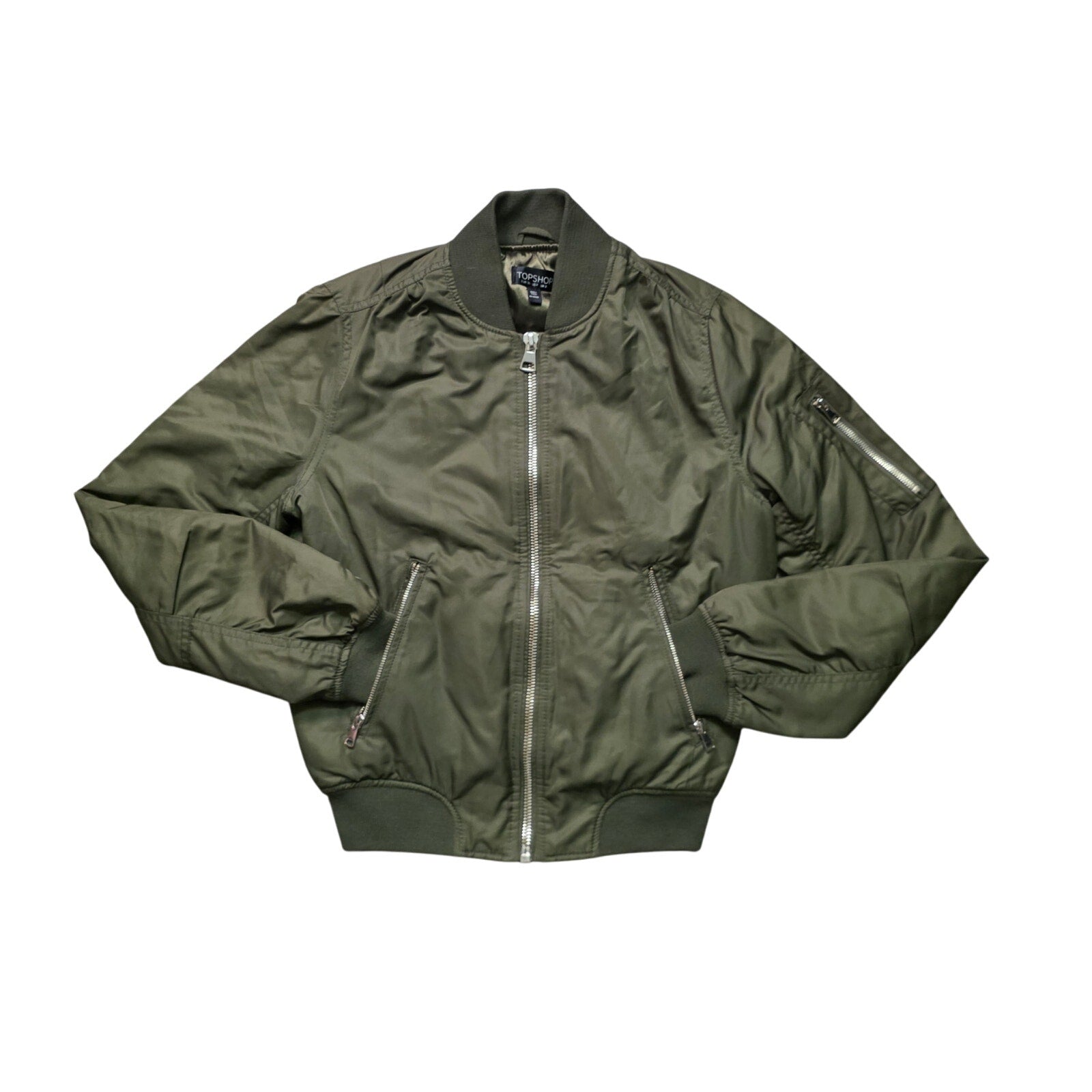 Topshop Bomber Jacket Women’s Size 4 Green Full Zip Ribbed Lined