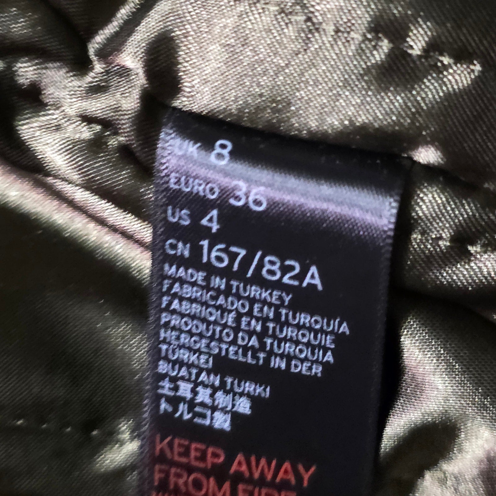 This Topshop bomber jacket features a smooth zip front, ribbed cuffs and hem, and a fully lined interior for comfort. It’s lightweight but structured, great for everyday wear, evenings out, or layering in mild weather.
