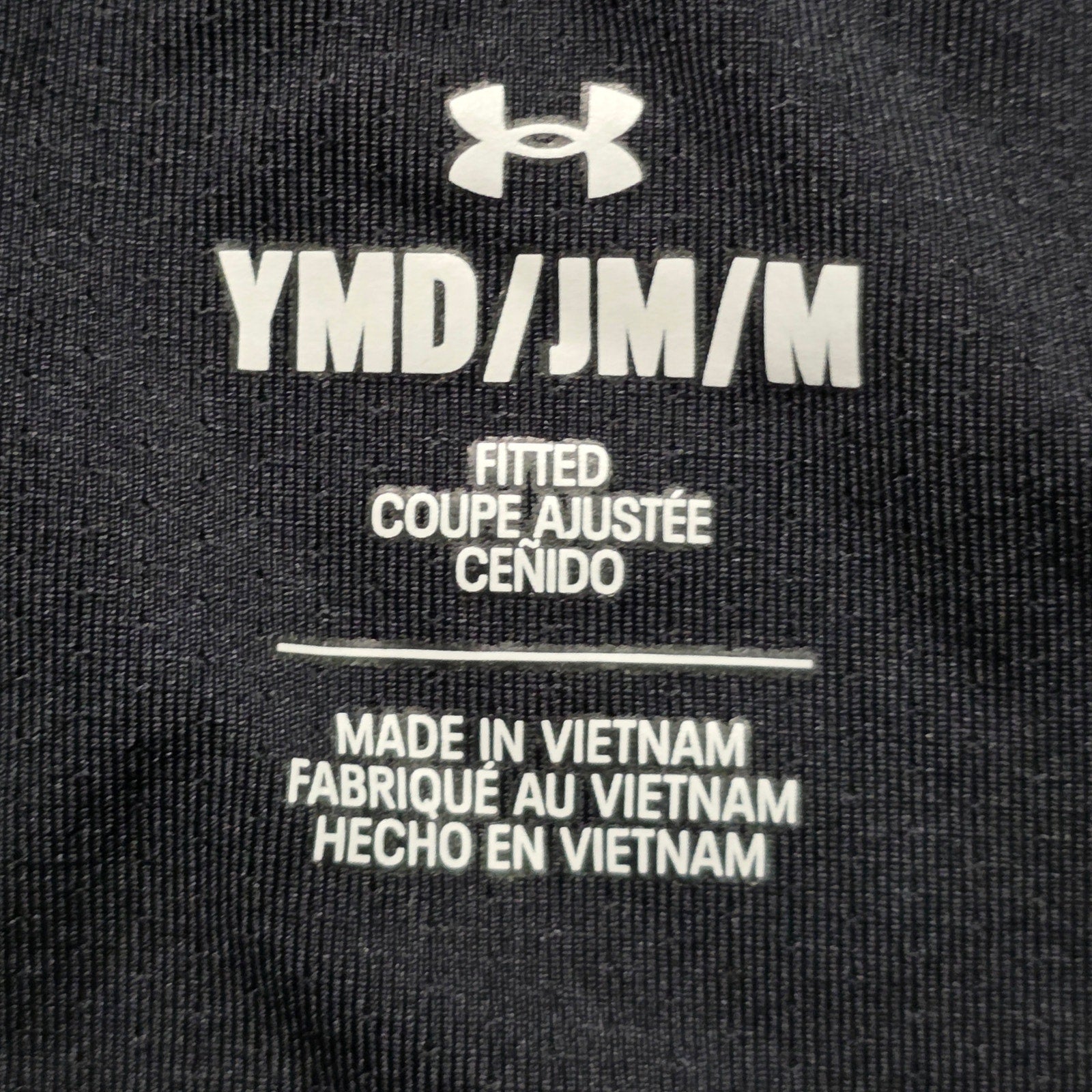 These Under Armour slider shorts are made from HeatGear compression knit that hugs the body, wicks sweat, and includes a cup pocket for protection during sports. Fits youth medium (YMD), perfect for baseball, softball, or high-movement athletic use.