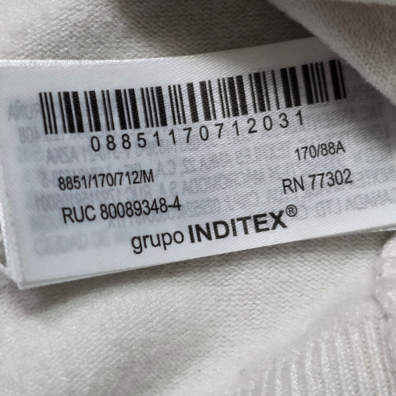 Zara Sweater Womens M Off White Button Sleeve Knit Pullover